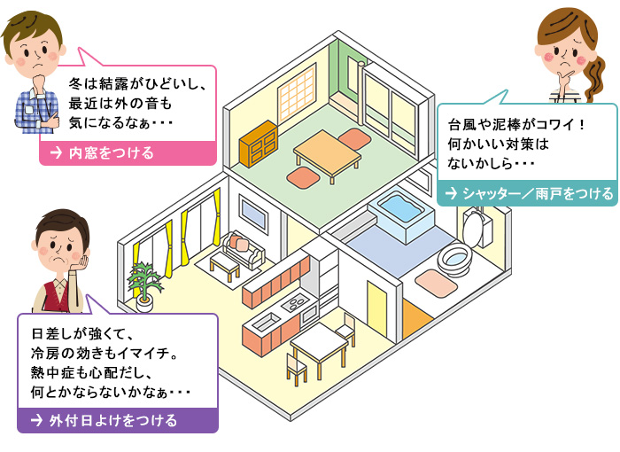 窓のリフォームで、遮熱・断熱・防露といった効果を高めれば、より少ないエネルギーで快適に。